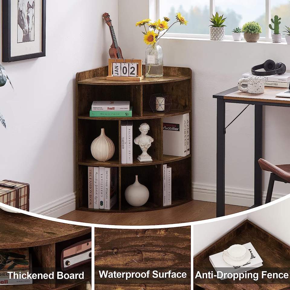 THLC - 0042 Corner Cabinet with 8 Cubbies Wooden Cube Storage Organizer Modern Bookshelf Units