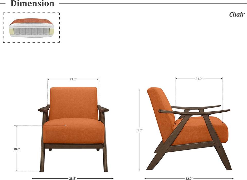 THLCr - 0020 Comfy Fabric Upholstered Accent Chairs Midcentury Armchair with Cushion Sturdy Frame for Living Room