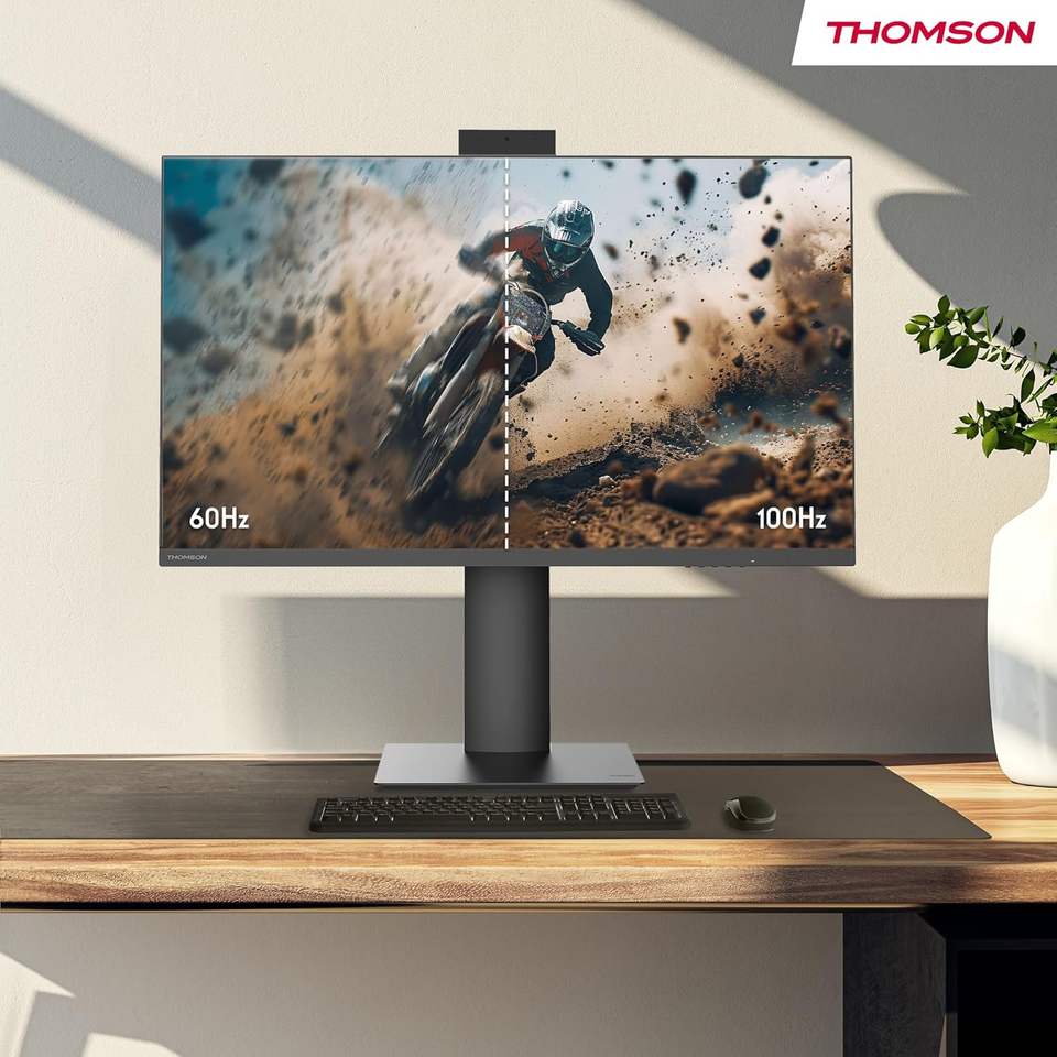 THOMSON 27 Inch Full HD Monitor with Pop-Up Camera, 100Hz IPS Panel, 65W USB-C Power Delivery, M27FB7C14V