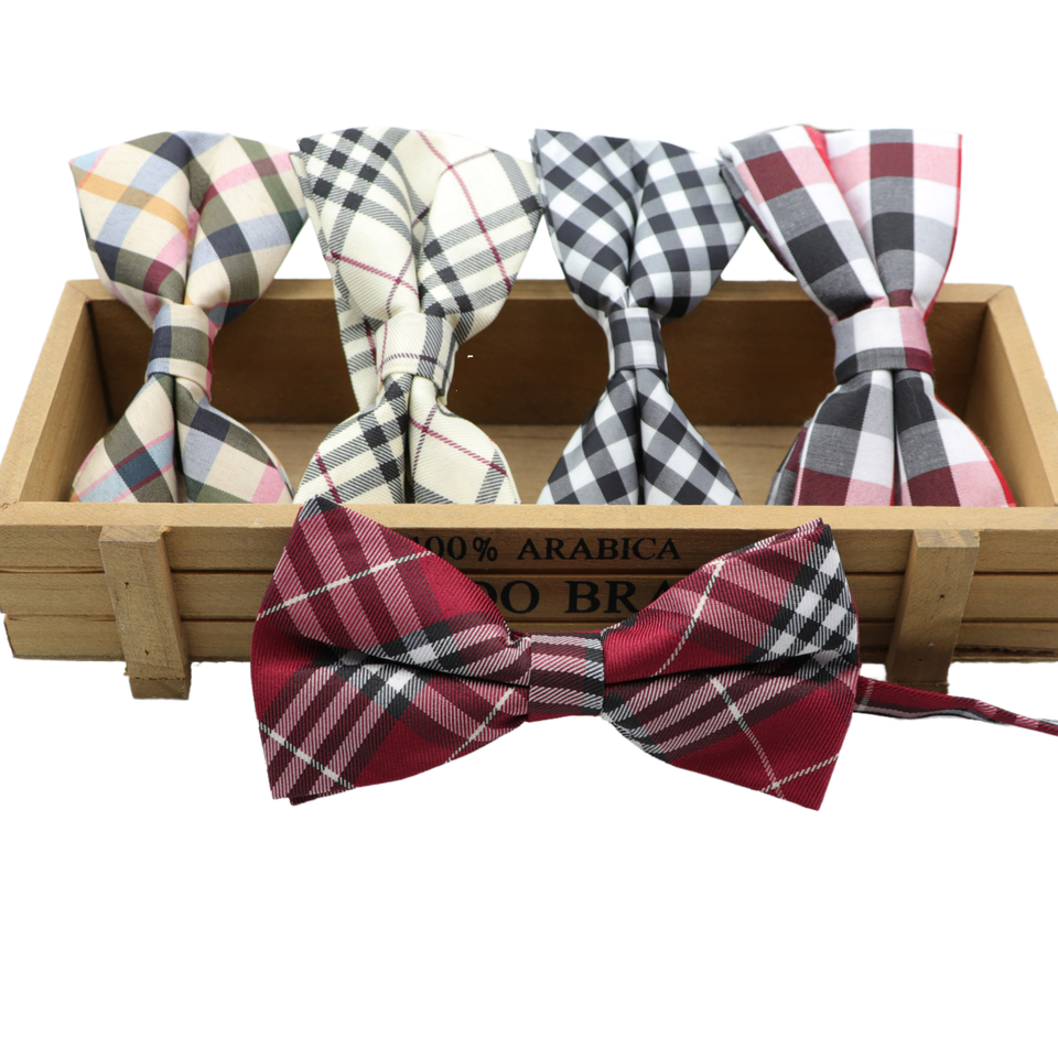 TIE BENON Classical Men's Pre-tied Double Layer Fabric Polyester Bow Tie Plaid Striped Flexible Smooth Soft Matte Butterfly Ties