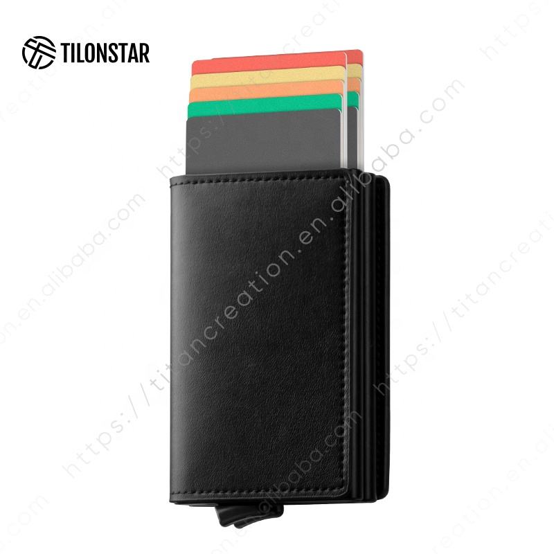 TILONSTAR TG201D Custom Business Travel Pocket Aluminum Leather ID Credit Card Holder Wallet