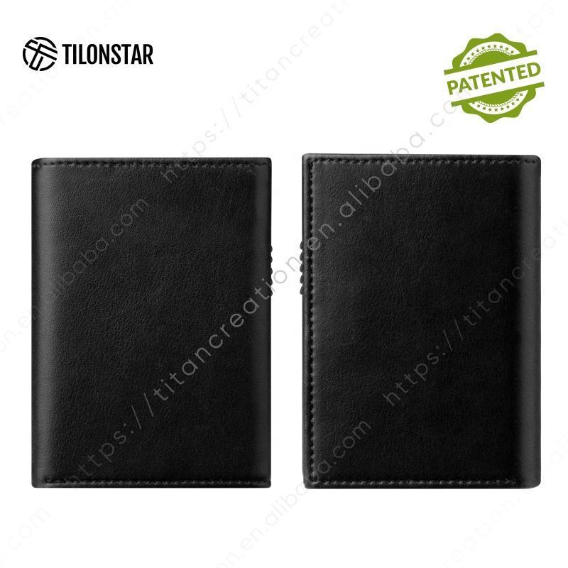 TILONSTAR TG302 Wholesale Low MOQ Side Push Stylish Leather Aluminum Business Card Holder MInimalist Pop up Wallet