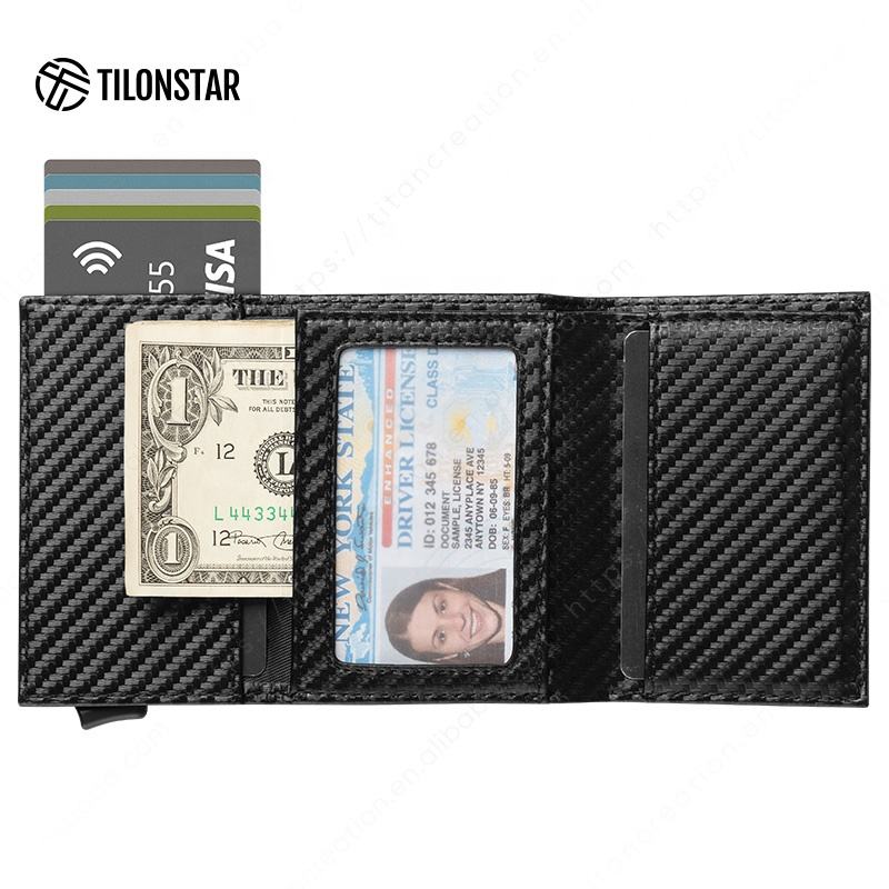 TILONSTAR TVC203 Fashion Men's RFID Blocking Pop up Wallet Carbon Fiber Leather Credit Card Holder