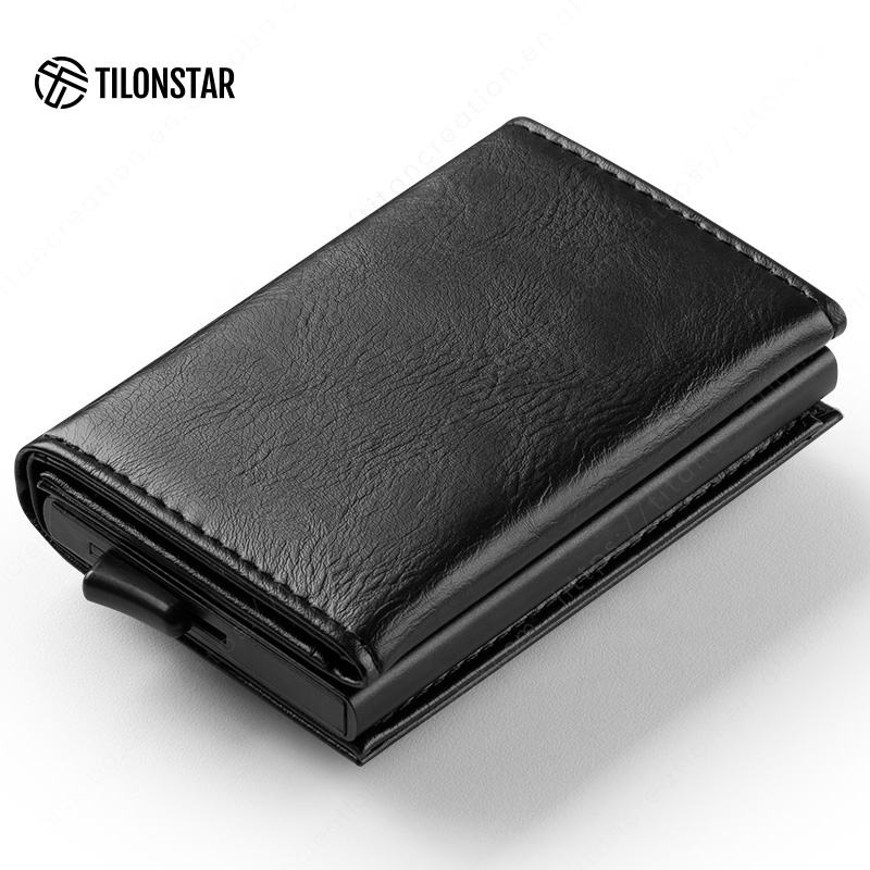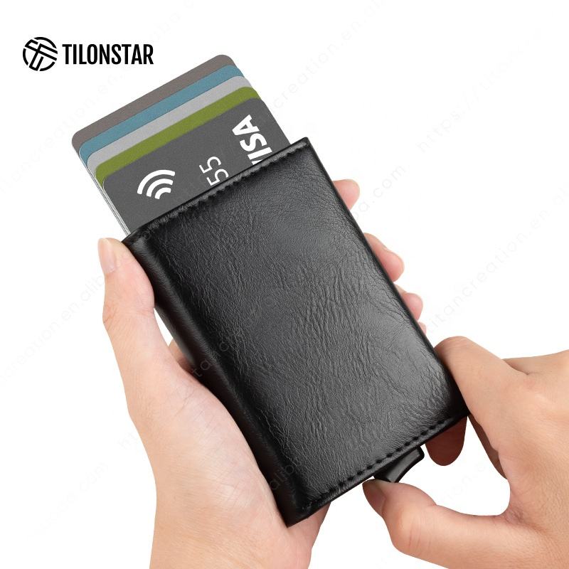 TILONSTAR TVC203 Wholesale Price Automatic RFID Blocking Aluminum Card Holder Leather Pop up Wallet for Men