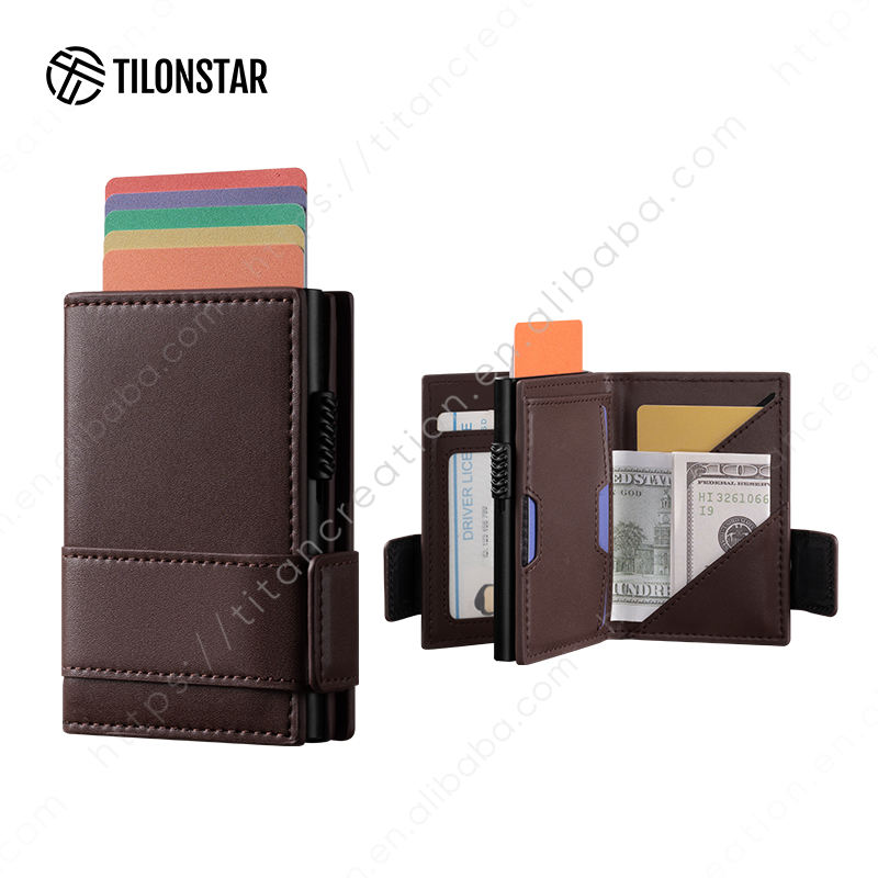 TILONSTAR TVC332 Large Capacity Side Push Out Aluminum Wallet Bifold Leather ID Credit Card Holder for Work or Travel