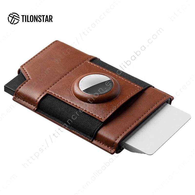 TILONSTAR TVC506 Creative New Slim Tarjetero Billetera Cuer Aluminum Pop up Business Card Holders Leather Wallet for Men