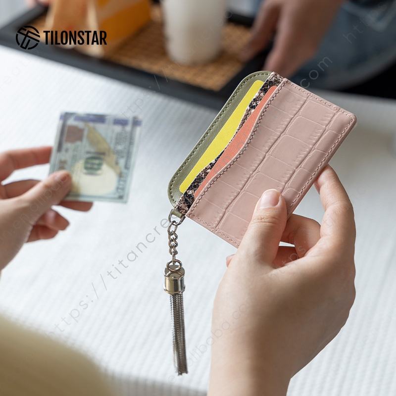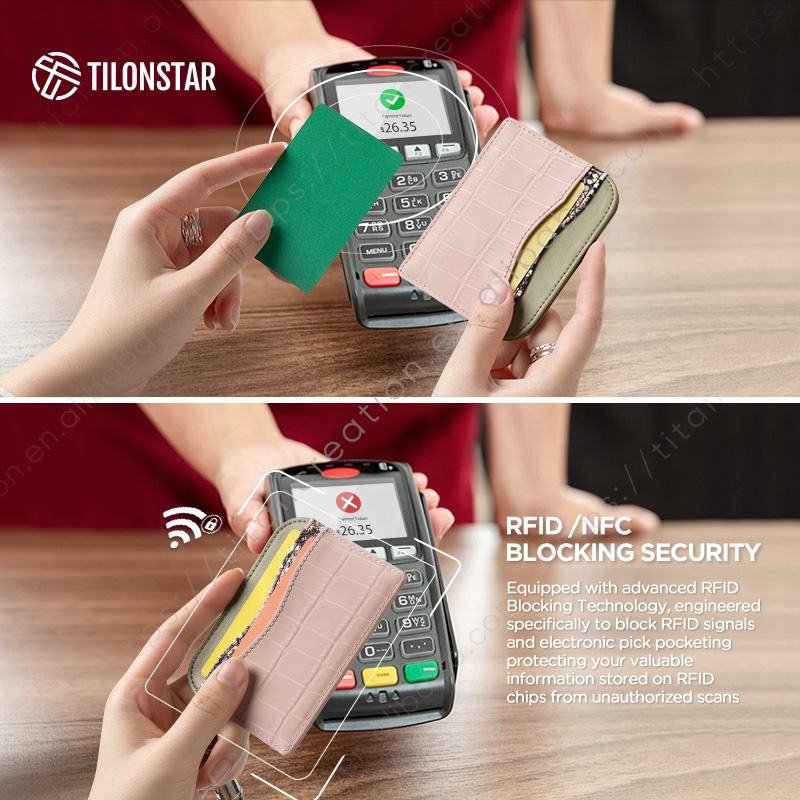 TILONSTAR TVW140 Fashion Women Hand Splicing Premium Leather Wallet RFID Blocking Credit Card Holder with Metal Hardware