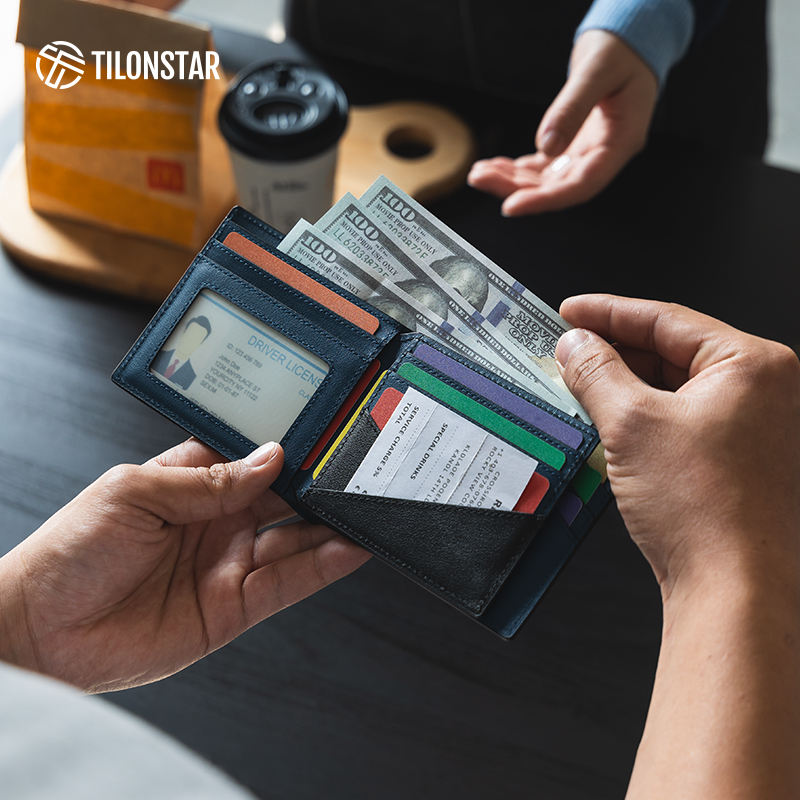 TILONSTAR TVW143 Multi-card Slot Premium Bifold Wallet RFID Blocking Coin Wallets Genuine Leather Credit Card Holder for Men