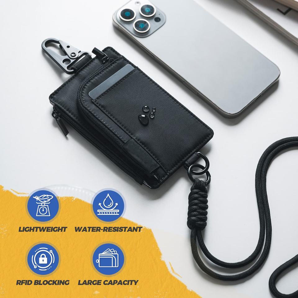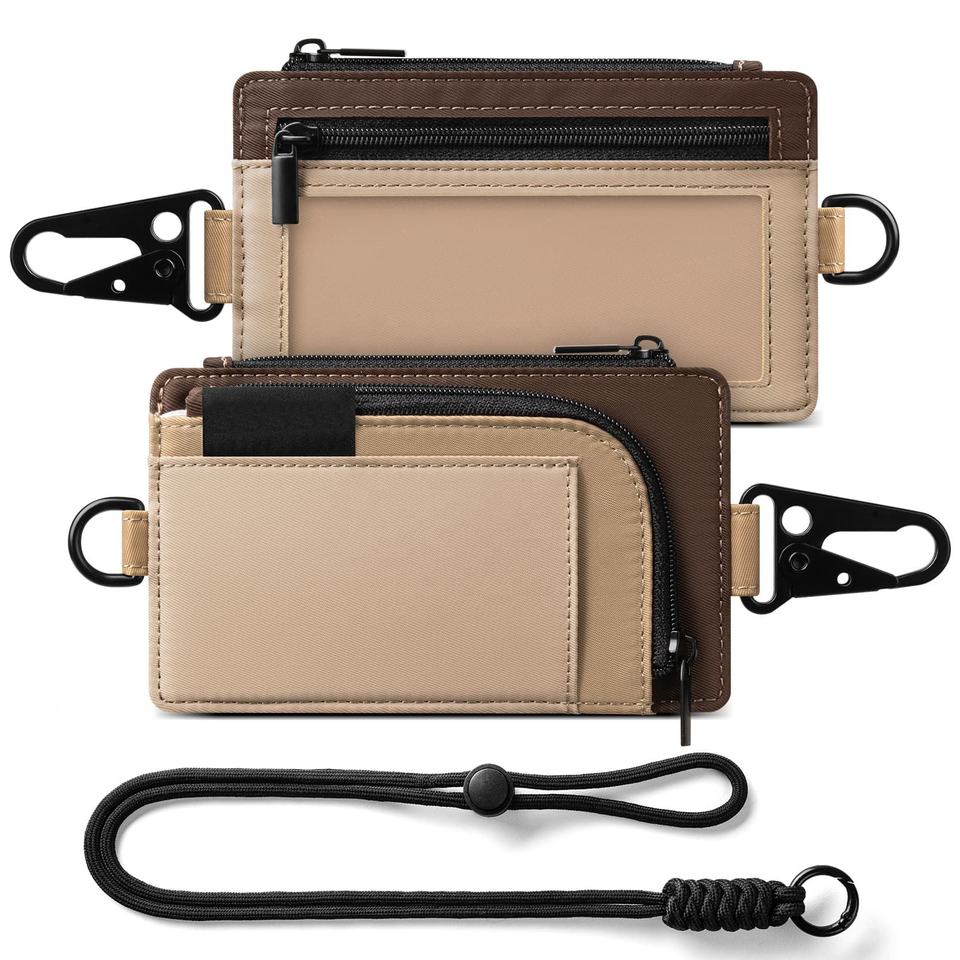 TILONSTAR TVW153 Fashion Slim Outdoor Hiking Travel ID Credit Card Holder Water Resistant Zip Pocket Key Wallet with Carabiner