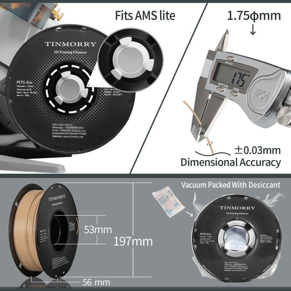 TINMORRY PETG Filament 1.75mm, Rapid PETG-Eco 3D Printing Filament, For Bambu Lab/Creality FDM 3D Printer, 1 KG 1 Spool, Apricot