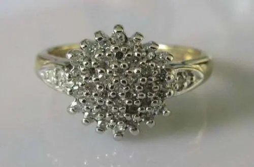 TISHYA DIAMOND Real Moissanite 2Ct Round Cut Cluster Vintage Women's Engagement Ring Sterling Silver Gold Plated 5.5gm