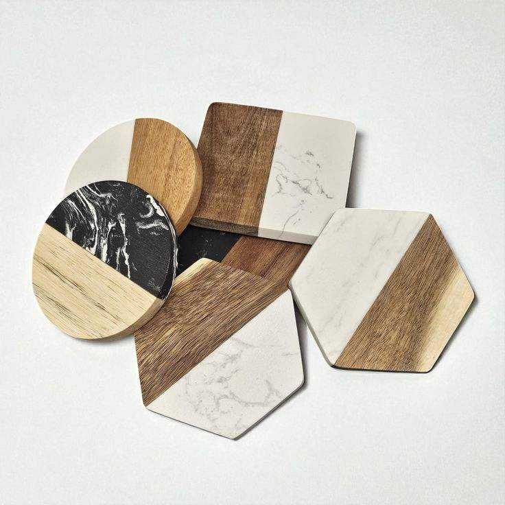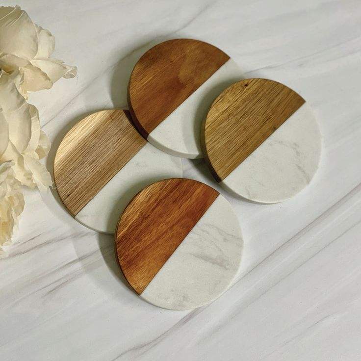 TITLES Round Marble Acacia Wood Coasters Custom Size Wooden Drinks Cup Elegant Mats & Pads No reviews yet