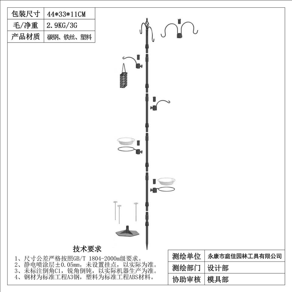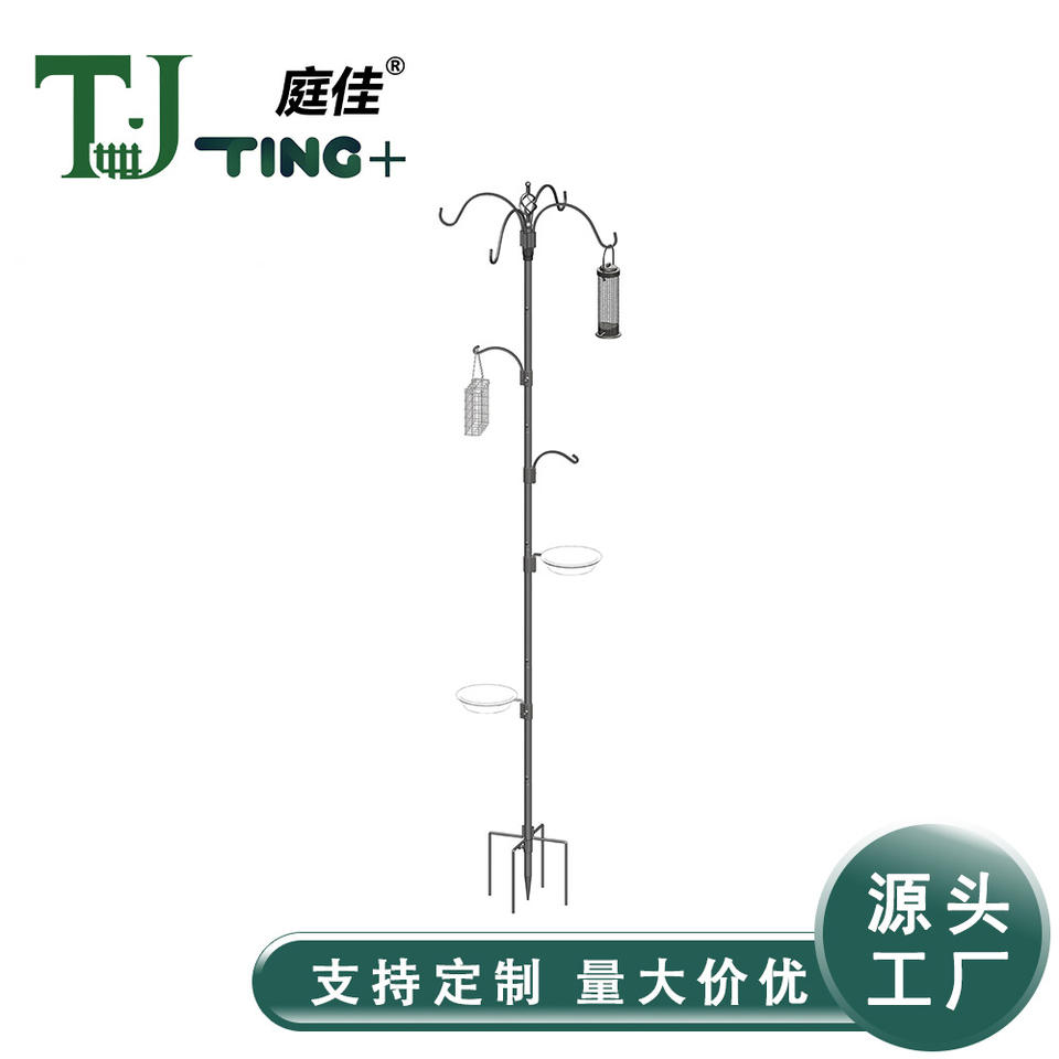 TJ-022 Metal Bird Feeder Stand 2.3m Ground Anchor With Four Hooks Spiral Design Durable Outdoor Garden Feeder Waterer