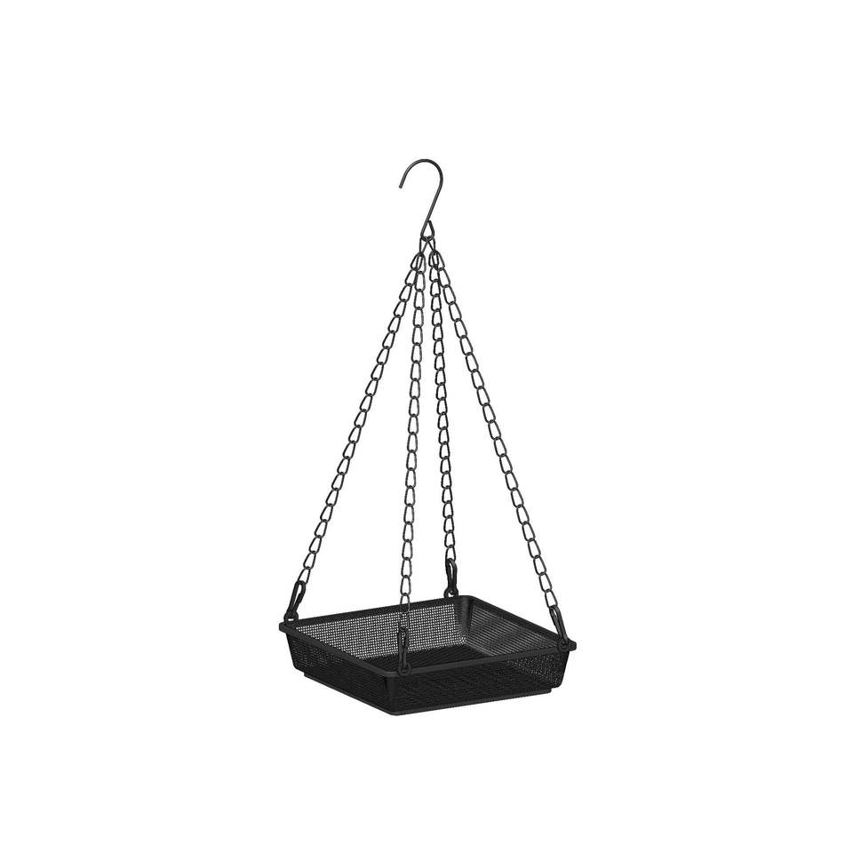 TJ1 2 2 Square Wire Mesh Bird Feeder Black Iron Rectangle Hanging With Chain Durable Outdoor Garden Feeding Rack