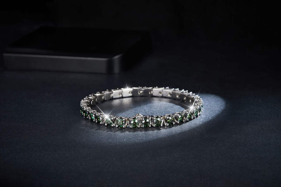 TK Hot Sale Women's 4mm Green Moissanite Tennis Bracelet VVS Gold Plated Classic Style Christian Jewelry