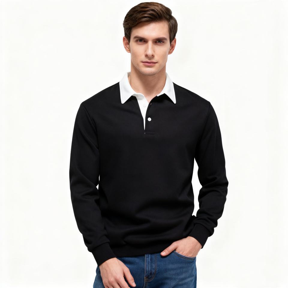 TKAN508D High Quality Casual with for Polo Collar and Long Sleeves Loose Fit for Winter 100% Cotton Trendy Men's Sweatshirt