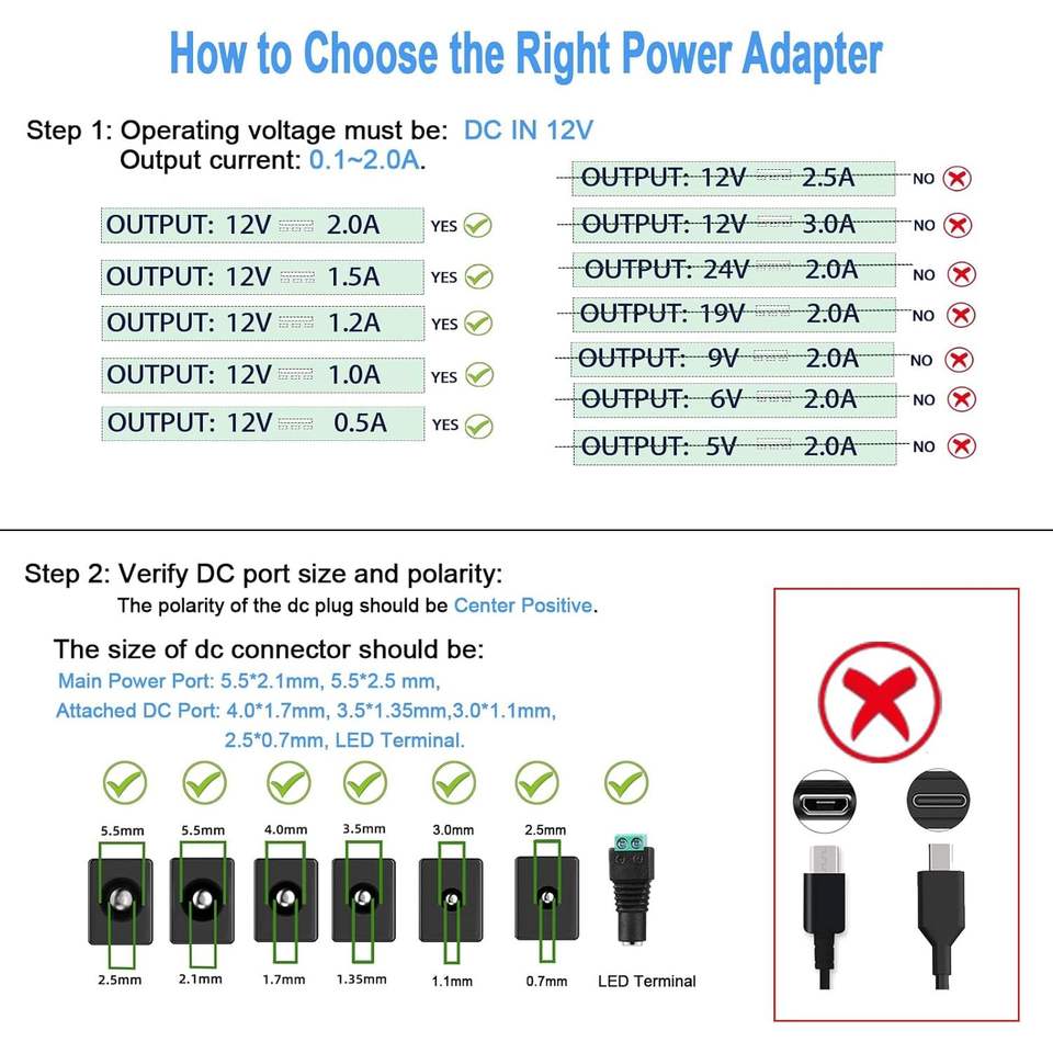 5 * DC Connector, 1*12V 2A AC to DC Power SupplyIncluded Components