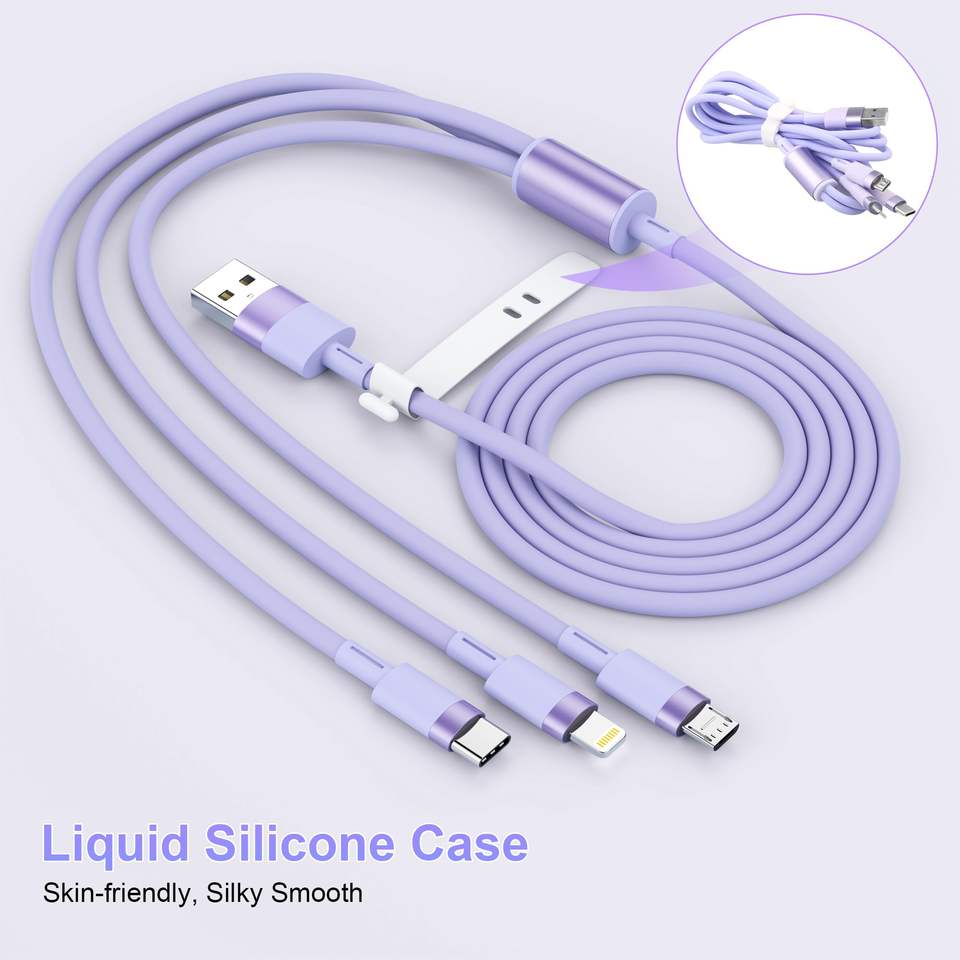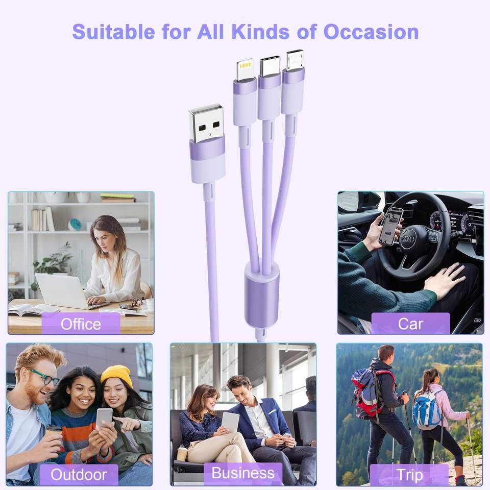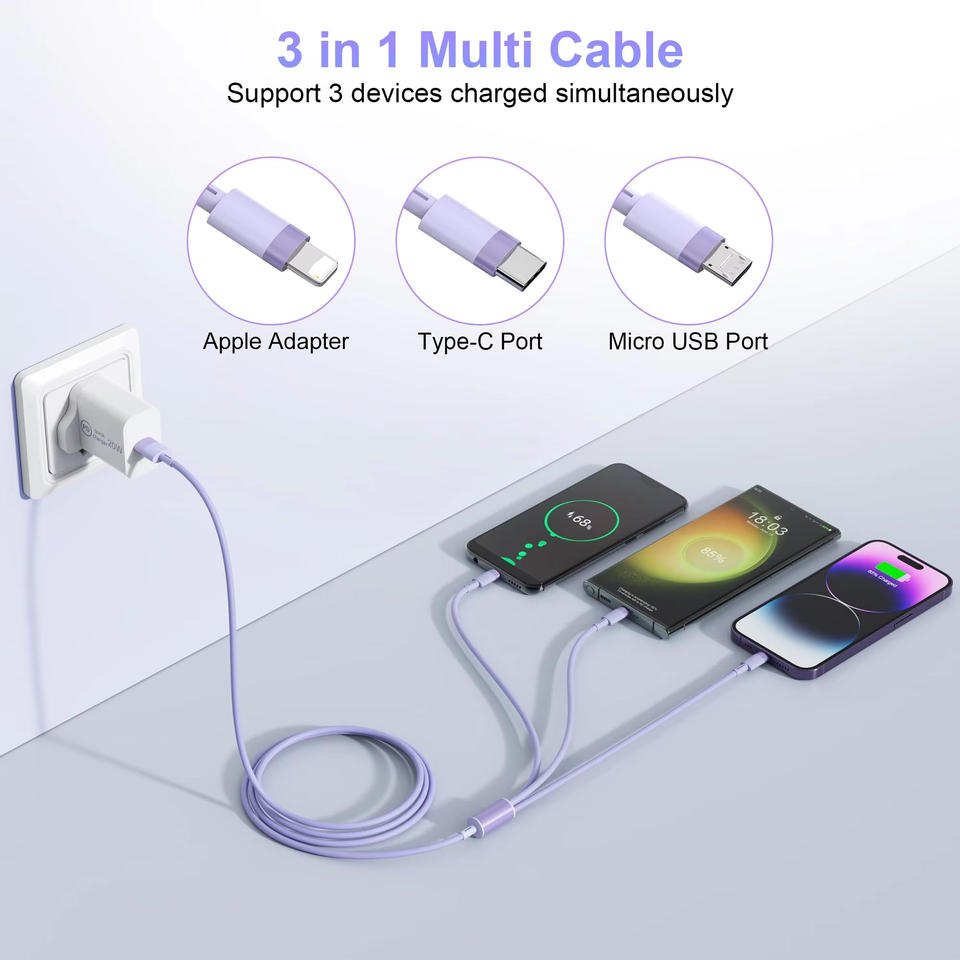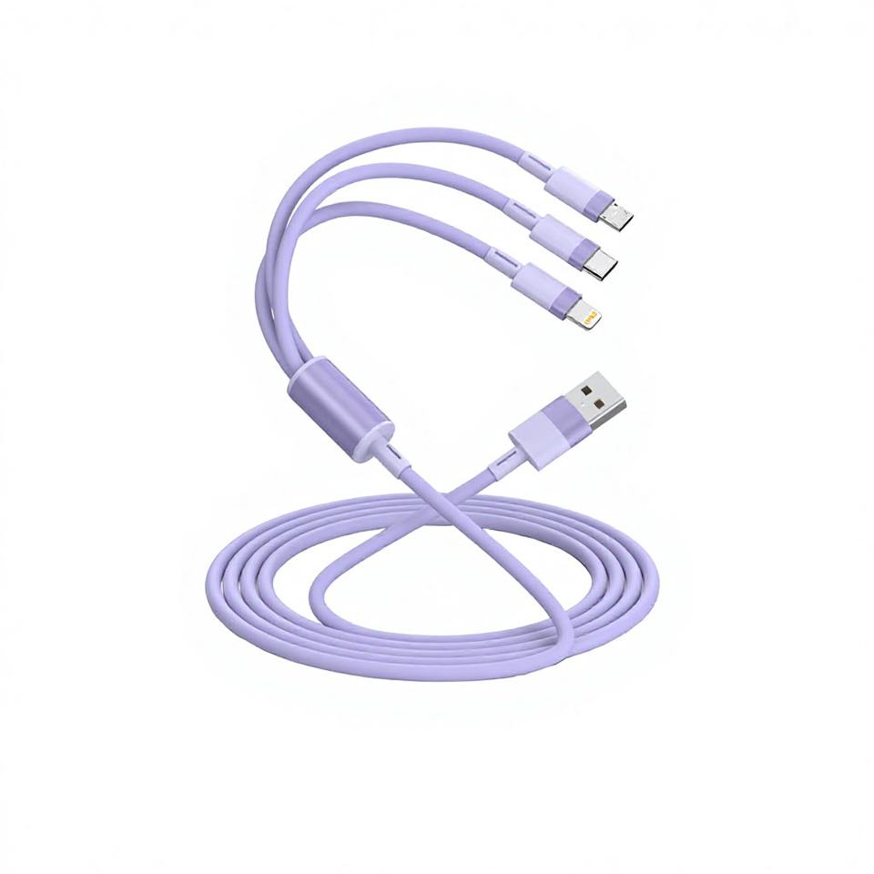 TKT 3-in-1 3A Fast Charging Multi-USB Type-C Micro USB Cable with for Adapter for Computers