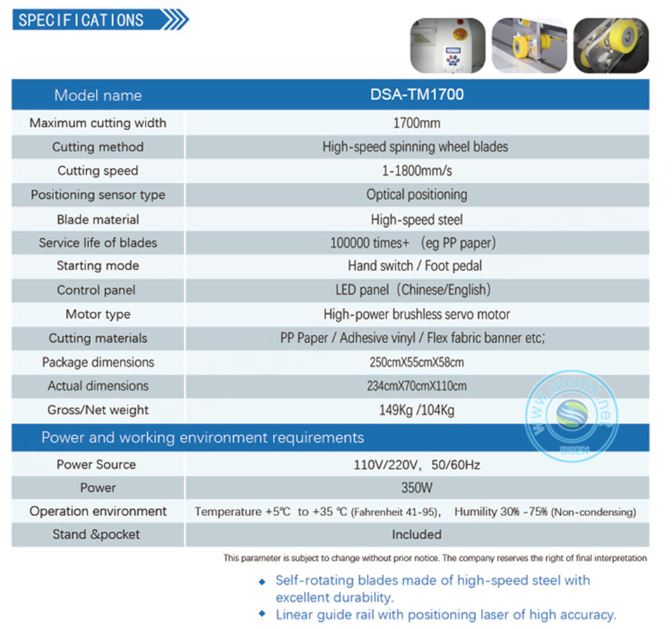 Max cutting size:1700mm