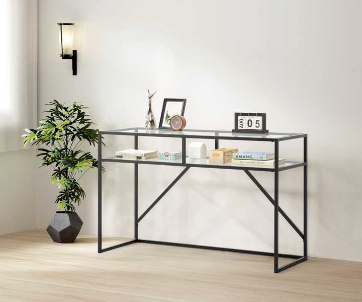 TMG-A136 Industrial Style Black Metal Tempered Glass Console Table for Living Room Furniture in Home Villa Hotel Workshop Use