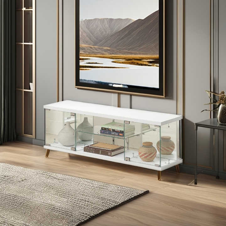 TMG-E40 OEM ODM Customized Tempered Glass Design Multi-Functional TV Stand for Living Room Home Office Apartment Modern