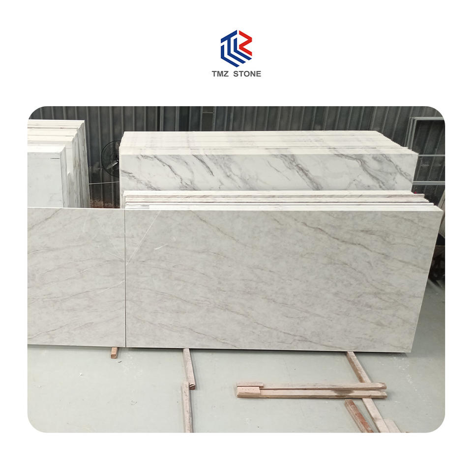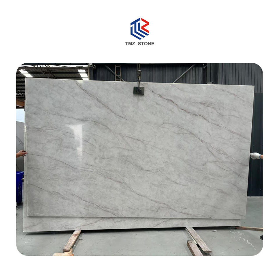TMZ ODM OEM Printed Luxury Quartz Slab with Realistic Veins 7011 Taj Mahal PD for White Kitchen Countertop & Wall Cladding