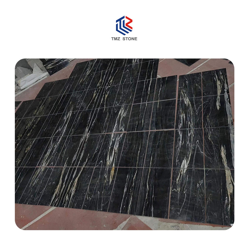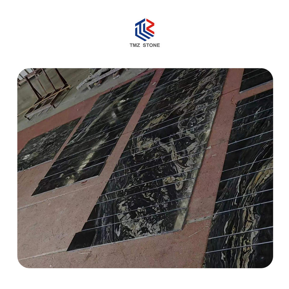 TMZ STONE ODM OEM Black Marble with Gold Line Slabs Tiles for Wall Panels - Add Glamour to Living Rooms & Bedrooms