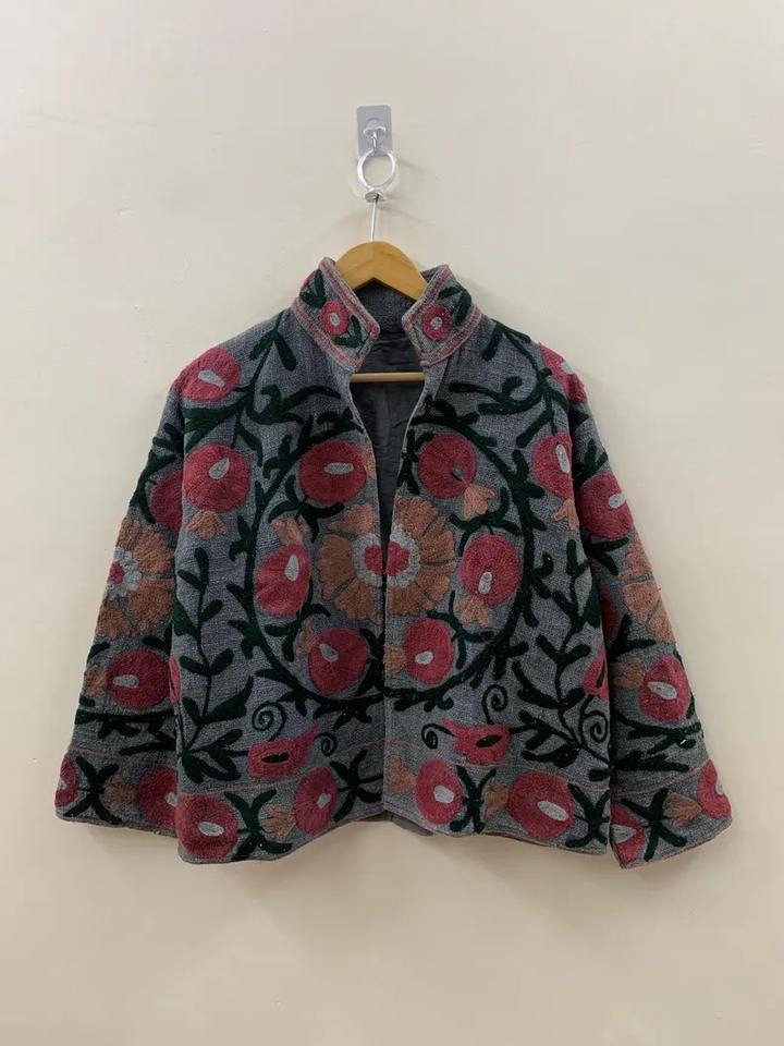 TNT Fabric Suzani Velvet Jackets Coat Autumn Winter Floral Suzani Quilted Jacket for Womens Ethnic Wear