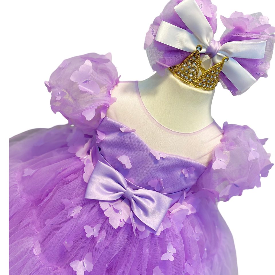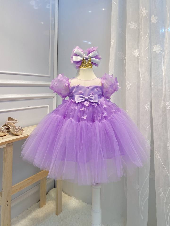 TOP CHOICE Children's Purple Princess Dress Butterfly Decoration Multi-layer Soft Mesh Fabric Cotton Lining Eco-Friendly