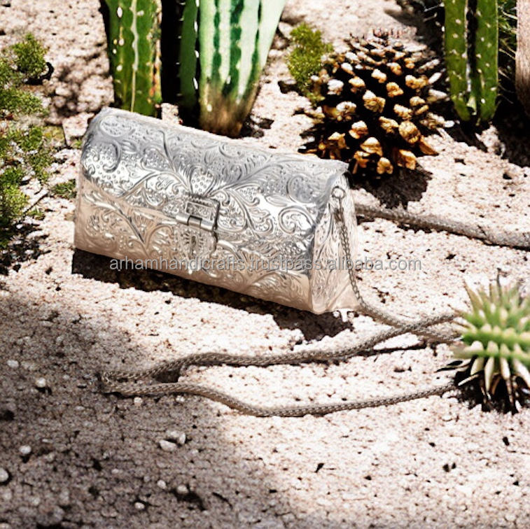 TOP MOST Handmade Metal Clutch Bag Vintage Hand Embossed Gold and Silver Plated Brass Hand Bag at Low Price by LUXURY CRAFTS