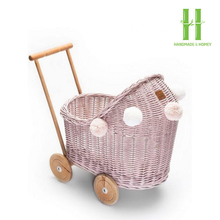 TOP SELLER Adorable Rattan Wagon for Kids Trendy Rattan Kids Toys Eco Friendly Wicker Doll Wagon Hand Carts Trolleys