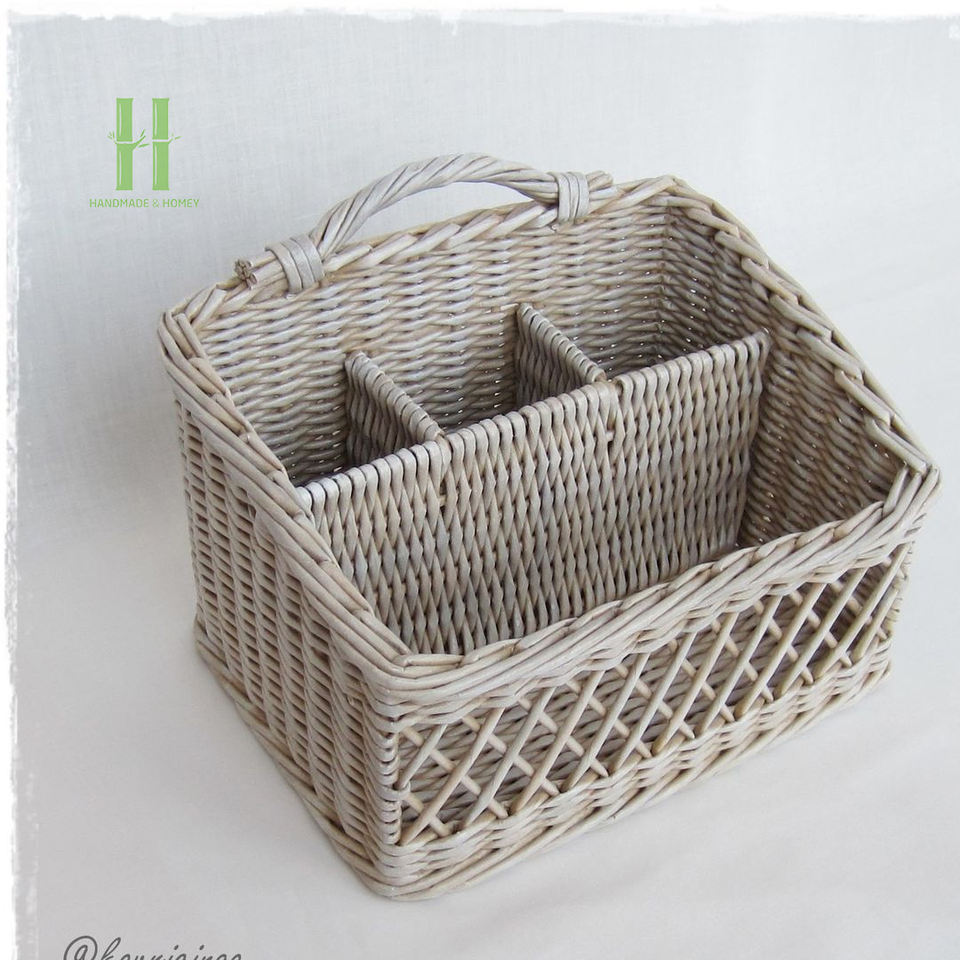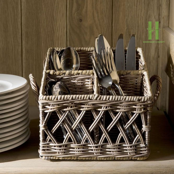 TOP SELLER Eco-Friendly Rattan Kitchen Utensil Organizer Basket Maddy Caddy Multi Compartment Storage for Spoon Fork Knife