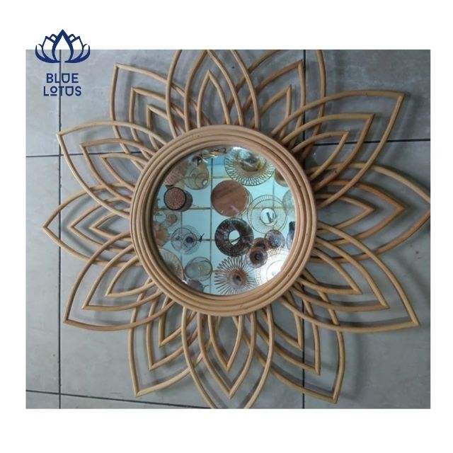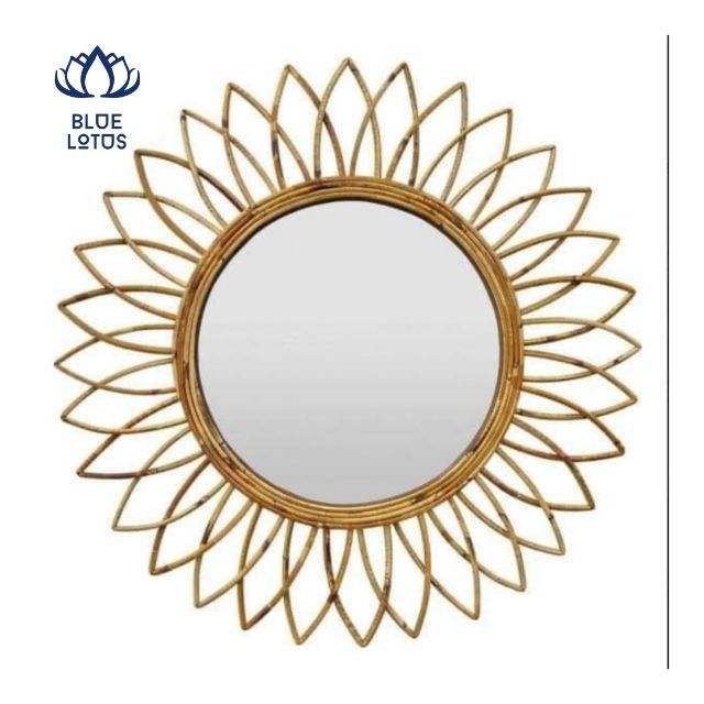 TOP SELLING 2026 Rattan Mirror Handcrafted Strong Frame Wall Decor Create Cozy Ambience And Highlight Wall Design For Cafe