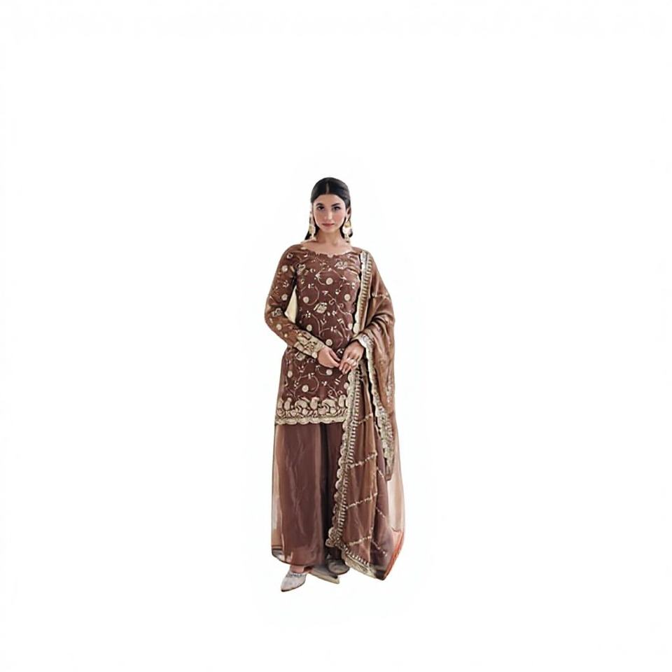 TOP SHARARA DUPATTA FENDY SILK with RICH SEQUINS EMBROIDERY WORK SALWAR KAMEEZ VINTAGE PARTY