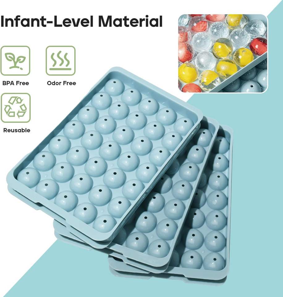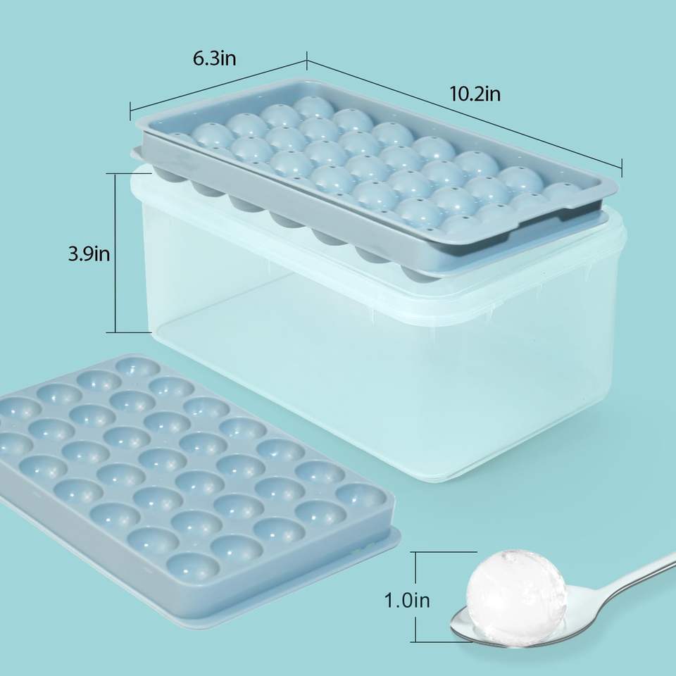 TOP Seller BPA Free Plastic Mini Round Ice Ball Maker Mold Ice Cube Tray With Lid and Bin Ice Scoop