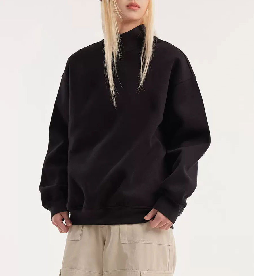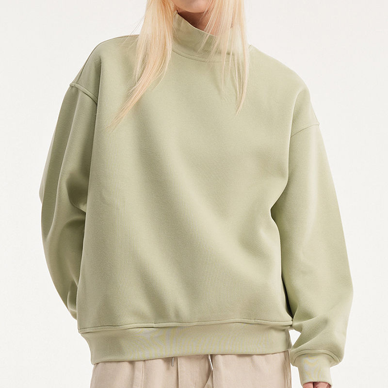 TOP Selling High Quality Women's Daily Wear Fleece Custom logo Solid Color Mock Neck Pullover Oversized Heavyweight Sweatshirt