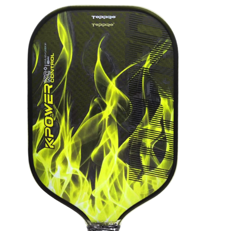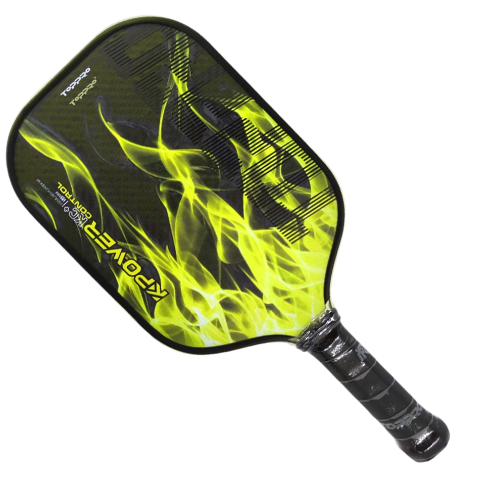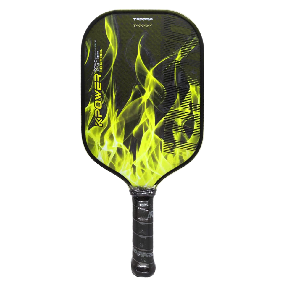 TOPPRO T7013 K-POWER CONTROL Pickleball Squash Ball Paddle Set Full Carbon Molded Premium PU Grip Yellow-Carbon Face 14mm