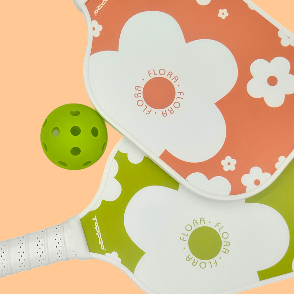 TOPPRO T7025 Outdoor Sports Pickleball Fiberglass Honeycomb Racket Set with Orange & Apple Green Polymer Honeycomb Core