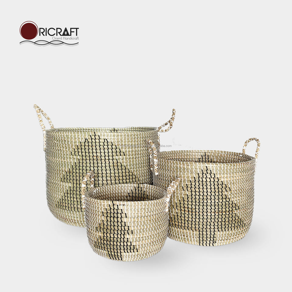 Set of 3 TORTILLA Seagrass Christmas Tree Pattern Storage Baskets for Home and Office Elegant Coil Decorative Basket