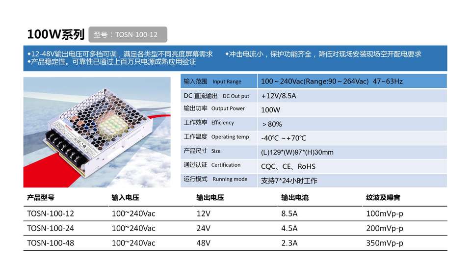 TOSN - 100 - 12 100W Power Supply: Outdoor Signage & Industrial Applications