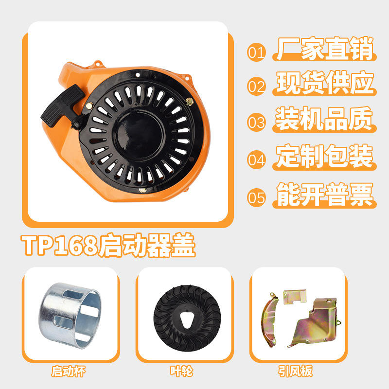 TP168F 168 Diesel Engine Parts Manual Starter Puller Air Guide Cover Starter Cup Impeller Air Deflector Converted for Gasoline