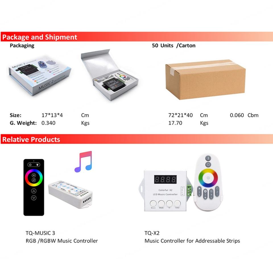TQ-MUSIC2 12V RGB LED Strip Light with 3-Channel 20M Wireless RF Remote Control Music Sync 432W Max Load
