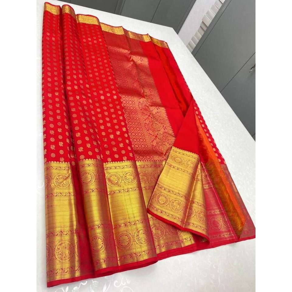 TRADITIONAL BANARASI SOFT SILK ZARI WORK SAREE WITH UNSTITCHED BLOUSE RED