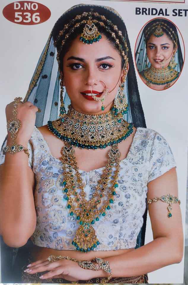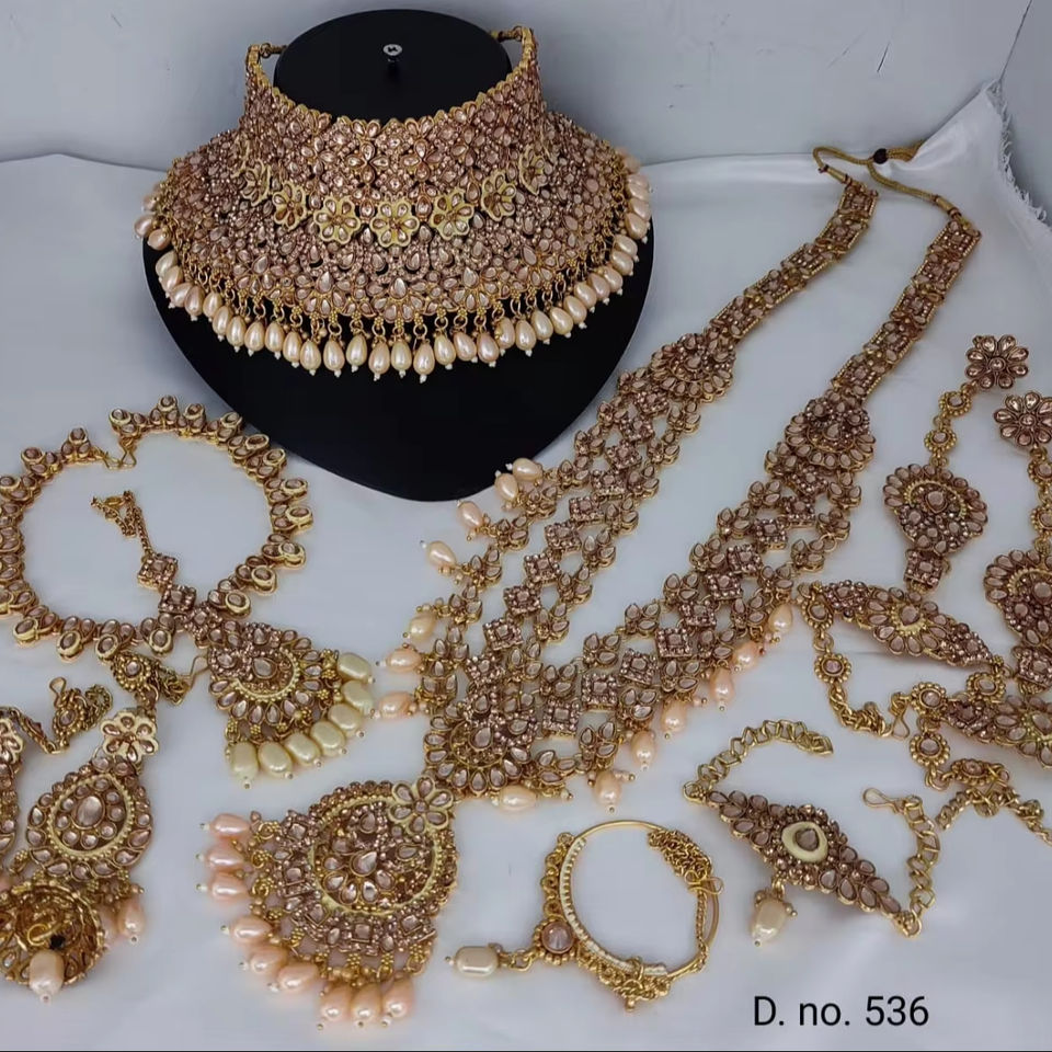 TRADITIONAL & FANCY ANTIQUE DESIGNER BRIDAL JEWELLERY GOLD PLATED and CZ ZIRCON BRIDAL WEDDING NECKLACE SET and FORWOMEN & GIRL