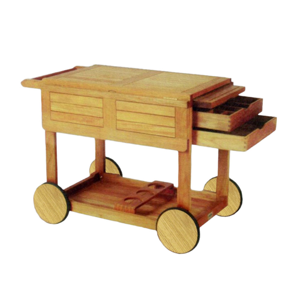 TRAY TABLE WITH WHEELS TEAK WOOD