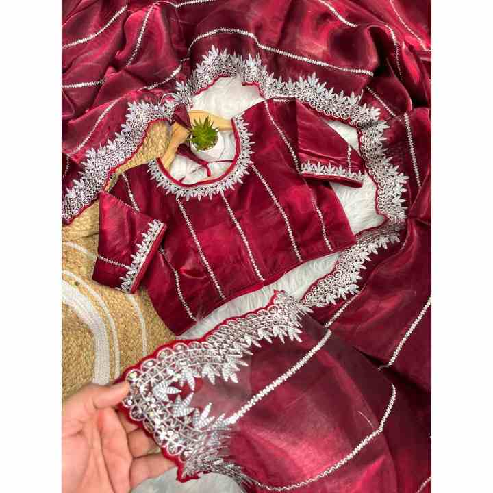 TREANDING SILK EMBROIDERY SEQUENCE WORK SAREE WITH STITCHED BLOUSE MAROON