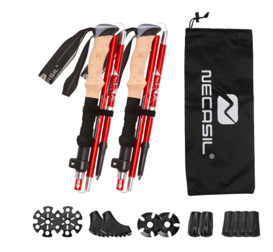 Aluminium Folding Trekking Pole with Bamboo Shaft Cork or EVA Handle for Outdoor Activities like Camping Climbing Hiking