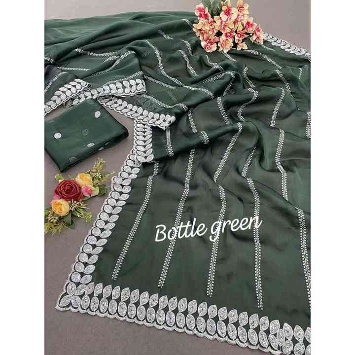 TRENDING SILK CHIFFON SEQUENCE WORK SAREE WITH UNSTITCHED BLOUSE GREEN