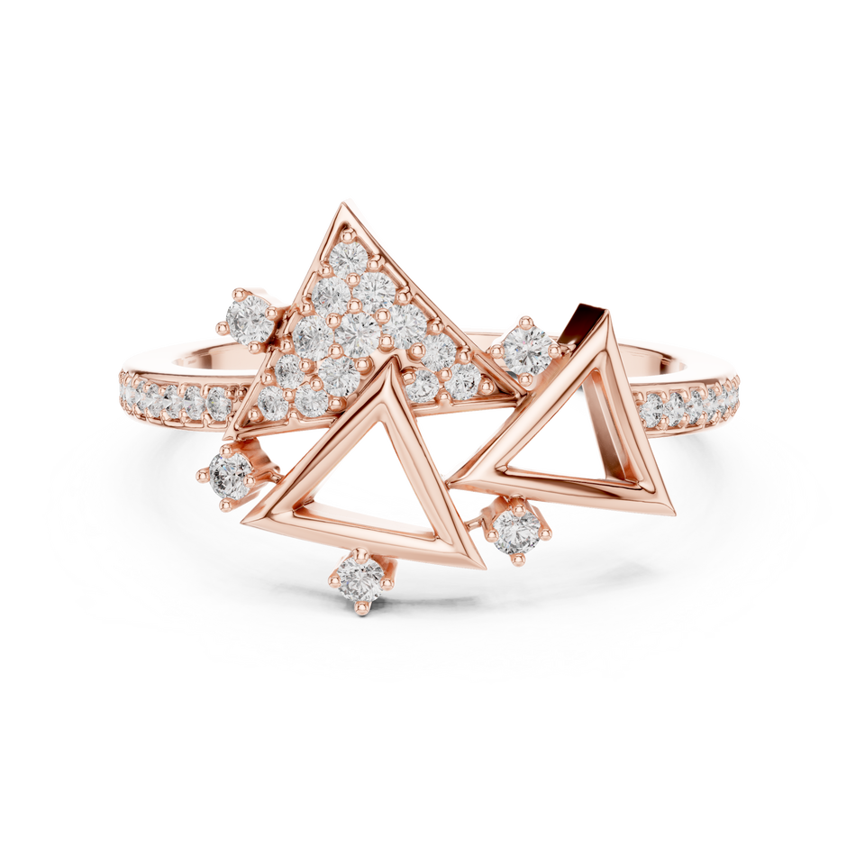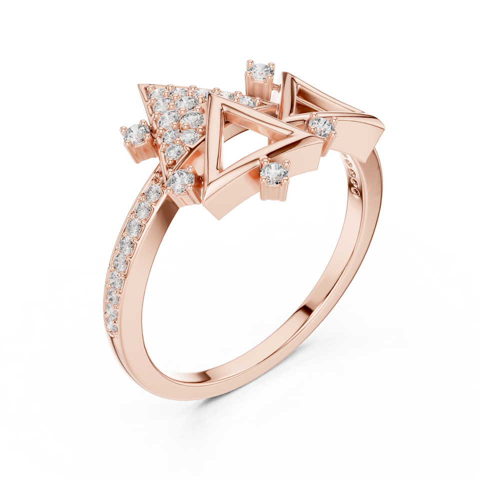 TRENDY ROUND CUT LAB GROWN DIAMOND GEOMETRIC RING SET IN 18KT ROSE GOLD FOR WEDDING ENGAGEMENT DAILY/OFFICE WEAR FOR WOMEN