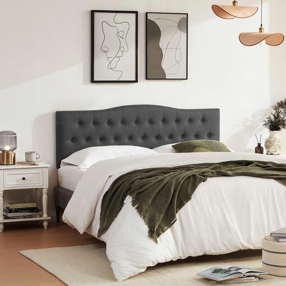 TRIHO-HB-009 Luxury Queen/Full Adjustable Height Tufted Headboard, Upholstered Velvet Fabric, Sturdy Solid Wood Easy Assemble